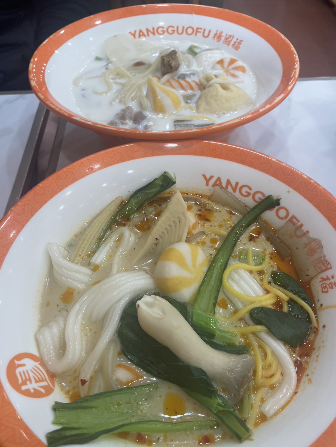 麺がモチモチで牛骨ベースのスープもめちゃ美味しかったです♪辛さも調整できるので好みの辛さにして食べました。